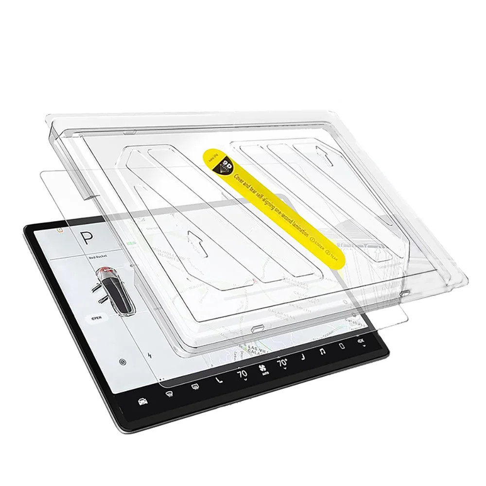 Skydd till skärmen på din Tesla Model 3 Highland eller Tesla Model Y Juniper. Med installationsram som förenklar appliceringen av skärmskyddet avsevärt. Förutom att skydda skärmen bidrar skyddet till att hålla skärmen mer ren från fingeravtryck.