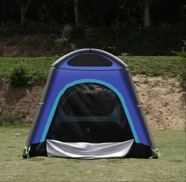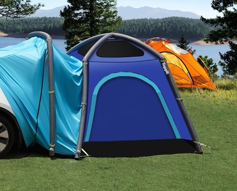 Uppblåsbart tält / baklucketält från Topfit som är anpassat för Tesla Model Y. För 1-2 personer att använda som sovtält alternativt förtält för er packning om ni vill sova i bilen. Tältyta ca 180x190 cm, höjd ca 170 cm. Tre-säsongstält som är regntåligt och klarar ca 3000 dpi (3000 mm vattenpelare).